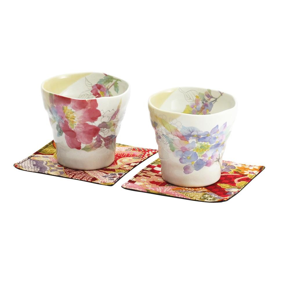 | シャクヤクとアジサイが美しい、ペアロックカップ。 |