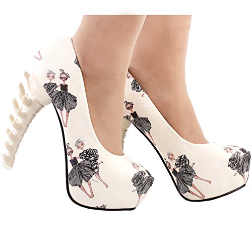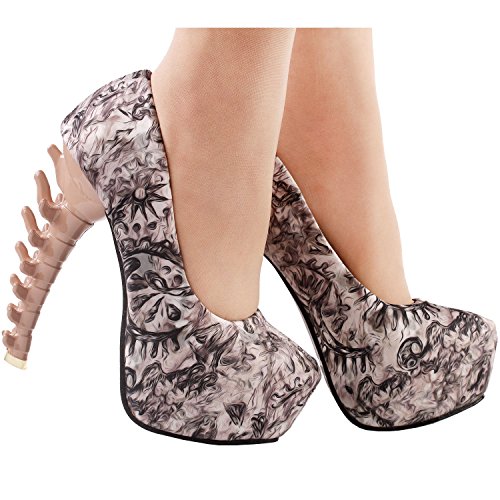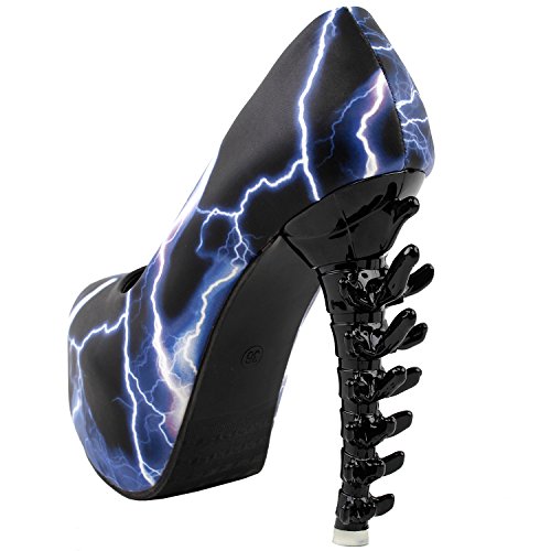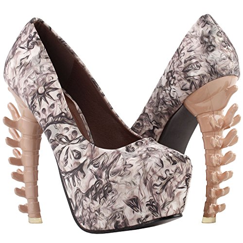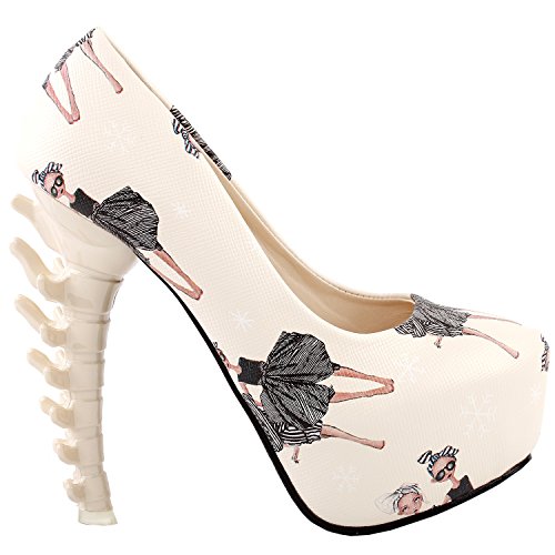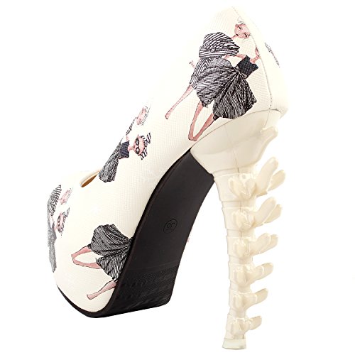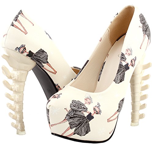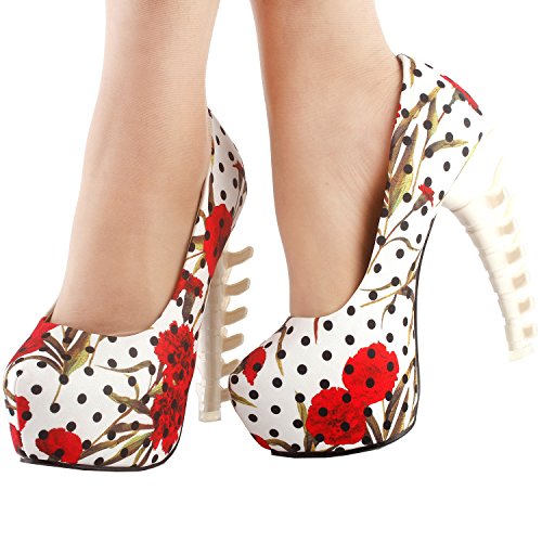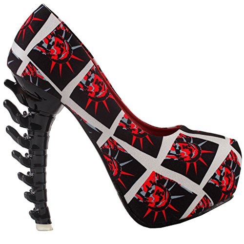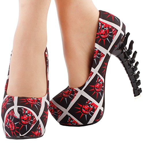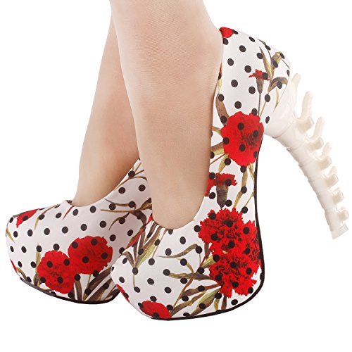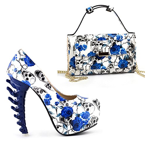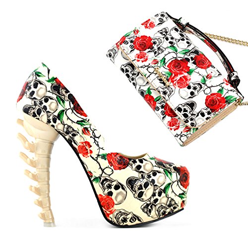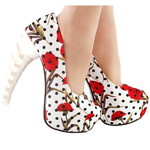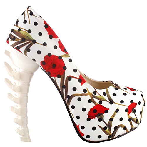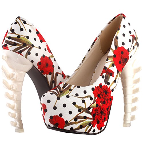 | Show Story Ladies Skull Rose Print Platform Bone Heel Party Club Pumps,LF80610 |