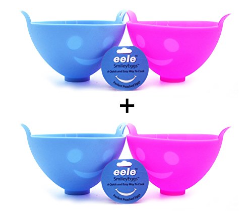 Product Description eele Smiley Silicone egg poaching cups - Quad Pack Get that perfect poached egg in a matter of minutes! Are you sick of the amount of time it take to poach eggs? Tired of how long it takes to cook a simply breakfast? Kids won't eat that delicious egg breakfast you've cooked them? Here's the answer for you: Smiley Eggs Non-stick surface is so easy to clean and the space-age design makes egg poaching the simplest it's been for a generation. Mr and Mrs Smiley Face design appeals to children - encourage them to eat their breakfast.