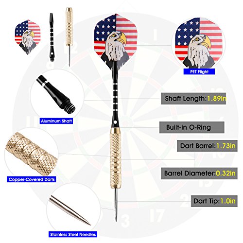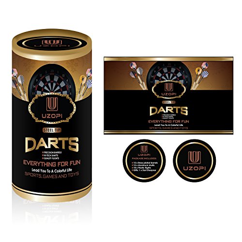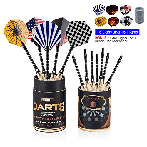 UZOPI 15 Packs Steel Tip Darts 18 Grams with Dart Sharpener and 3 Extra Flights, Aluminum Shafts & Brass Barrels, Perfect for All Levels in Every Rec Room, Man Cave, Bar and Game Room