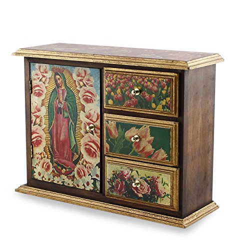 NOVICA Decorative Christianity Decoupage Pinewood Chest, Multicolor, 'Beloved Guadalupe'