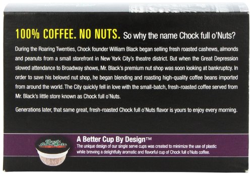 Chock Full o'Nuts Coffee, Upper West Dark Roast, Single Serve Coffee Cups, 12 Count