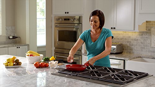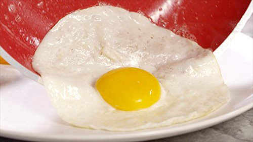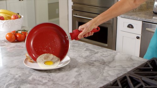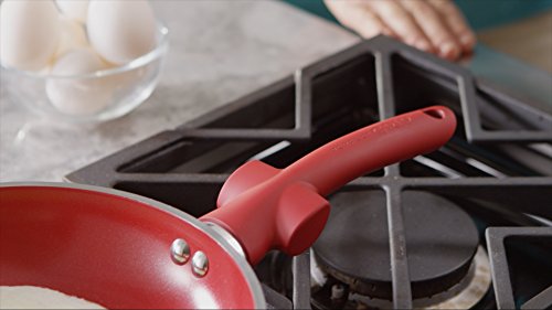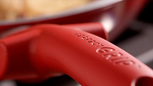 Get a grip with CeraStone's Titanium Perfect Grip 8.5 inch fry pan. The sleek red TPR, ergonomically designes handle utilizes your thumb for a sturdier, more comfortable grip and is even heat resistant. Use this pan safely on any cook top and never worry about harmful chemicals sneaking into your meals.
