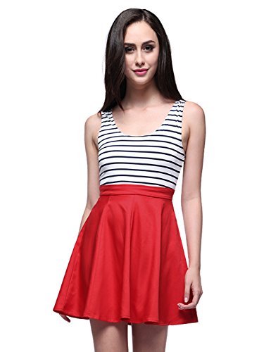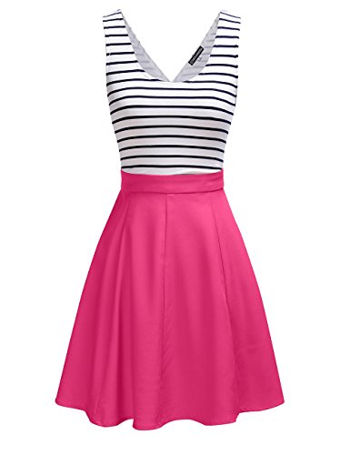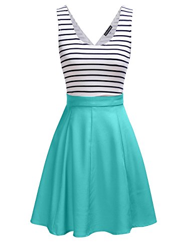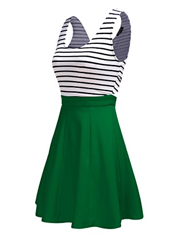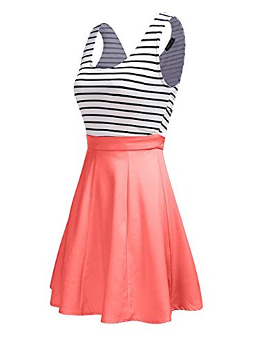 OMEYA.WANSHIDA. Women's Open Back Sleeveless Sexy Hollow out Slim Fit Black White Stripe Casual Cocktail Cute Mini Dress