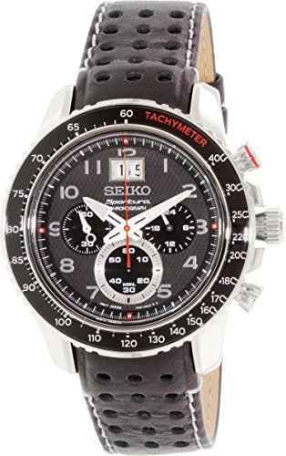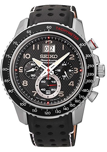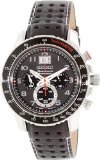 Stainless steel case. Leather strap. Black dial. Quartz movement. Date. Chronograph. Water resistant 100 meters. Case 45 mm.