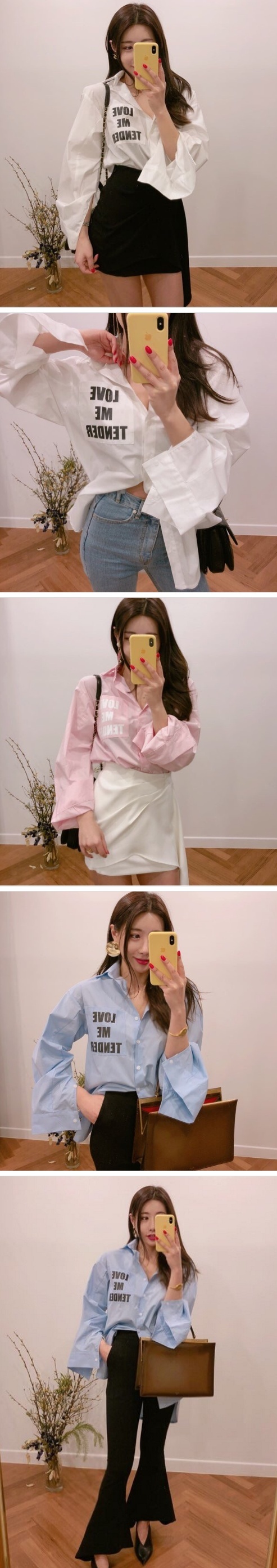 Women`s Boxy Shirts Loose Fitted Shirts White Pink Light Blue