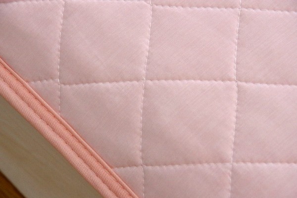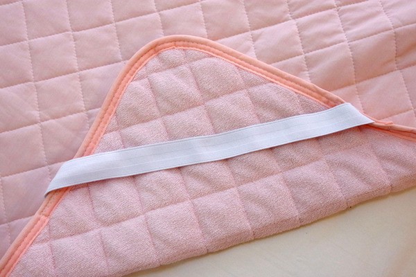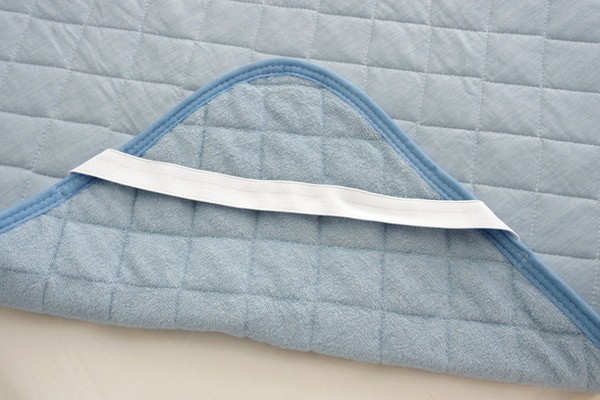【素材】表地=ナイロン100%【霜降り調生地】※Q-max0.373 裏地=パイル部)綿100% グランド部)ポリエステル100%※四隅ゴムバンド付き 中材=ポリエステル100%(東洋紡フィルハーモニィ30%) ヘム=ポリエステル80%、綿20%