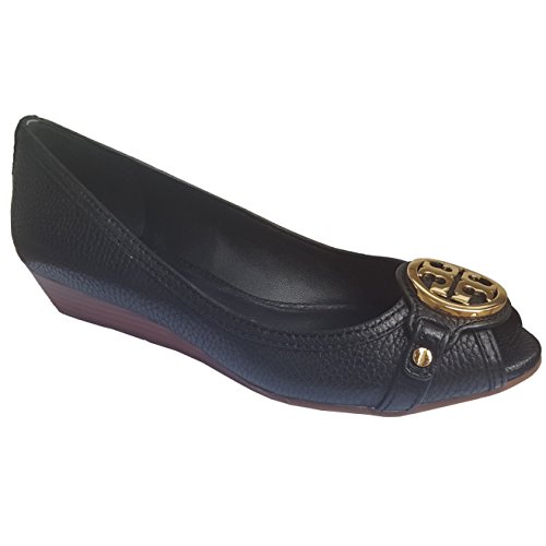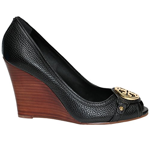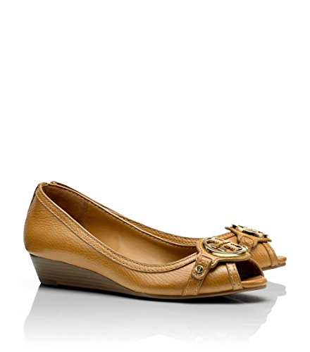 A classic peep-toe, elevated with subtle texture and a hint of shine. Our tumbled leather Leticia Mid Wedge has a stacked mid heel and a signature gold logo. It's a comfortable - and versatile - style to carry you from work to weekend, all season.Feature
