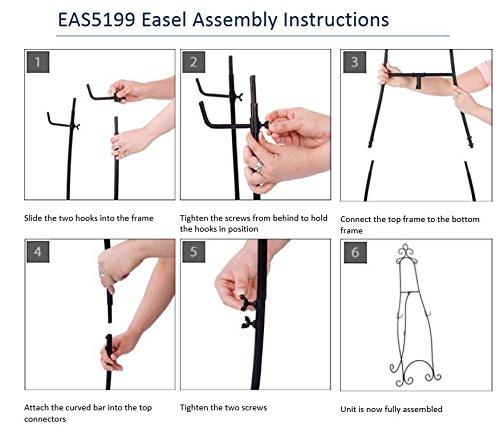 Displays2go 71.25 inches Tall Floor Standing Easel Stand with Decorative Embellishments and Adjustable Hooks, Steel Construction, Black (EAS5199BLK)