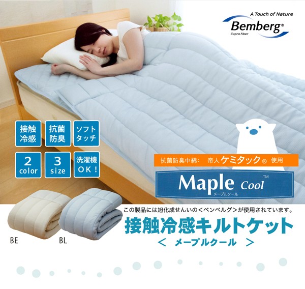【商品名】冷感 キルトケット 洗える 旭化成繊維 Maplecool使用 『15メープルクール』 ベージュ セミダブル 160×200cm