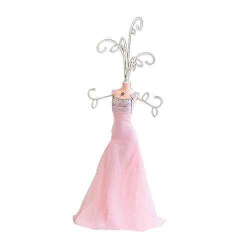 -. Title : Elegance Silver Gala Gown Jewelry Stand, Pink, 18"h