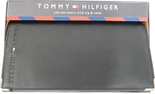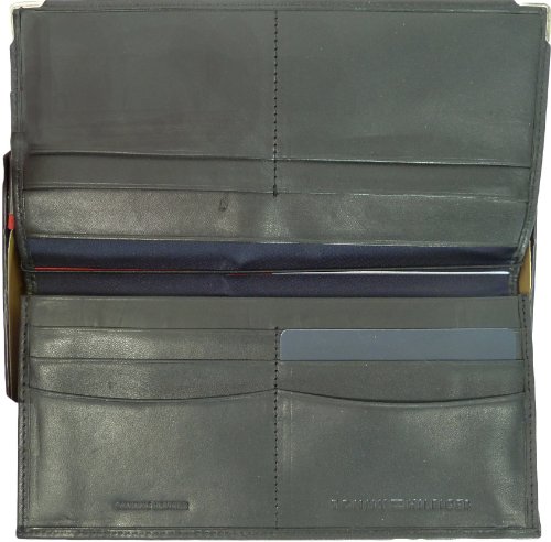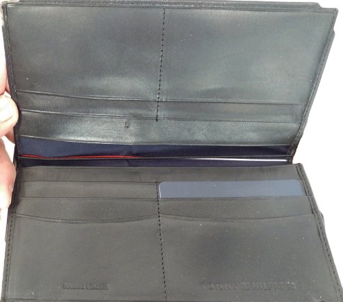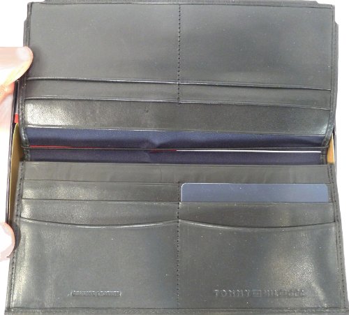 Tommy Hilfiger large dress wallet with many card slots, black leather.