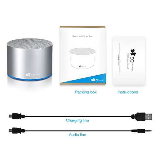 -. Feature : Music streaming via Bluetooth- Let the music play at home or away with EC Technology Bluetooth Speaker. It has flexible music streaming connectivity options that lets you stream your favorite audio tracks into it from a distance. / Amazing sound: This compact and mini Bluetooth speaker is Built-in high-quality and high-efficiency speaker monomer with 1x 5W driver, the enhanced bass resonator sound offers you an amazing music experience / Larger capacity: The increscent rechargeable 1300mAh Li-ion battery enables you up to 15 hours playtime; 30 hours call time and about 200 hours stand-by time. / The thoughtful design of non-slip mat at the bottom enables the speaker to stand steadily, reducing the possibility of moving while playing music. / Package Contents: 1xBluetooth speaker, 1xUSB charging cable, 1xAUX to Micro USB cable, 1xUser Manual.