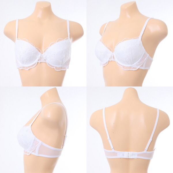 유니크한 어깨끈과 앞중심의 케미컬 모티브, 컵둘레를 따라 흐르는 레이스가 특별함을 더하여 줍니다.