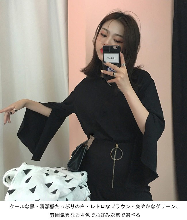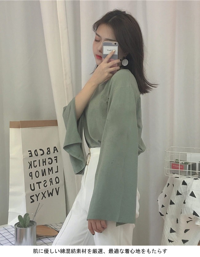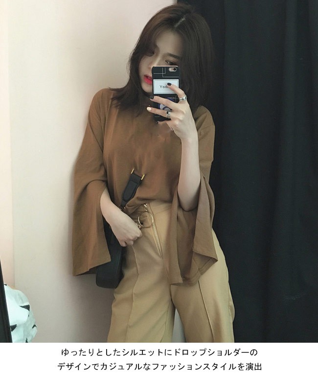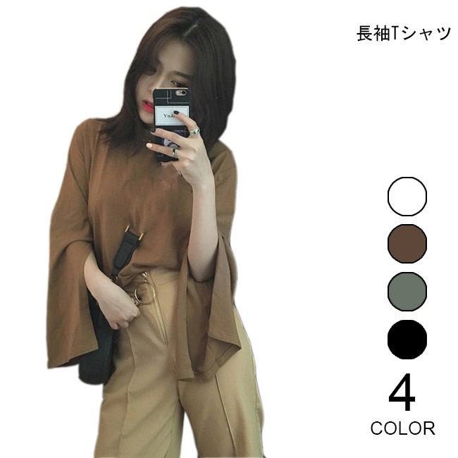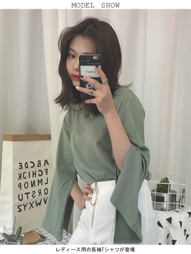 長袖Tシャツ レディース カットソー スリット入り袖 女性用 ゆったり Tシャツ 長袖 トップス カジュアル レトロレディース用の長袖Tシャツが登場肌に優しい綿混紡素材を厳選、最適な着心地をもたらすゆったりとしたシルエットにドロップショルダーのデザインでカジュアルなファッションスタイルを演出スリット入りのベルスリーブはとてもレトロでフェミニンな佇まいを漂わせるクールな黒・清潔感たっぷりの白・レトロなブラウン・爽やかなグリーン、雰囲気異なる4色でお好み次第で選べるカラー:ホワイト ブラウン グリーン ブラック素材 綿混紡サイズ(cm) FF 着丈55 バスト104 肩幅43ご注意:※サイズは平置きサイズです。素人採寸ですので、若干の誤差がございます、ご了承ください。
