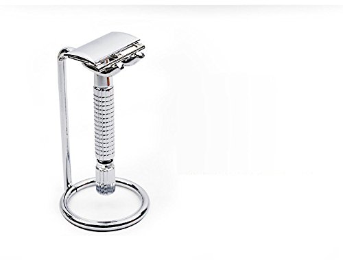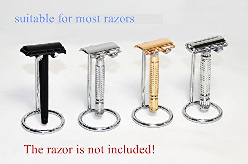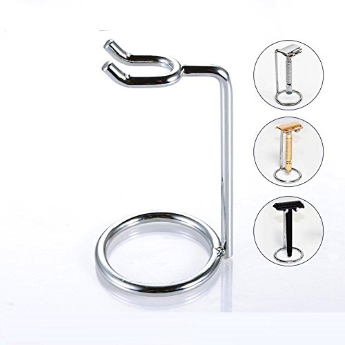 Yosoo Men Metal Art Shaving Brush Stand Holder Razor Base Chromed Silver Shaving Razor Beard Clean Shaver Kit Cartridge Easy Carry