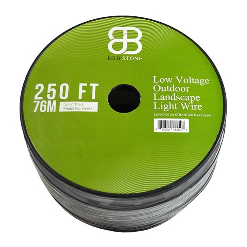 -. Title : Dripstone 250ft Low Voltage 12AWG 2Core Outdoor Light Parallel Flat-Twin Bare COPPER Wire Landscape Lighting Cable 12/2 Black
