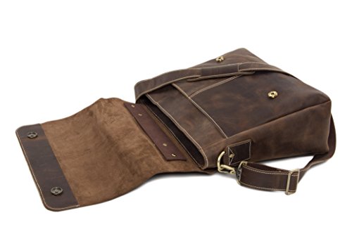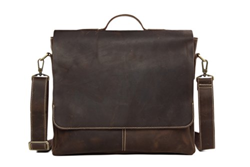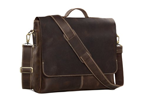 -. Title : ROCKCOW 14'' Crazy Horse Leather Briefcase Messenger Bag Laptop Bag Men's Shoulder Bag