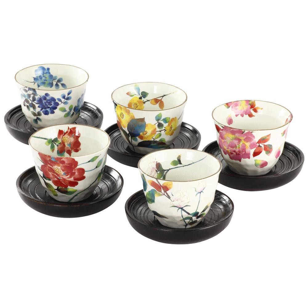 5色のバラを鮮やかに描いた煎茶碗と茶托の5客セットです。大切な方へのギフトとしても最適です。