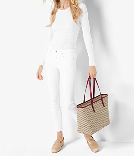 Michael Kors MICHAEL Emry Large Top Zip Tote- Natural / Cherry