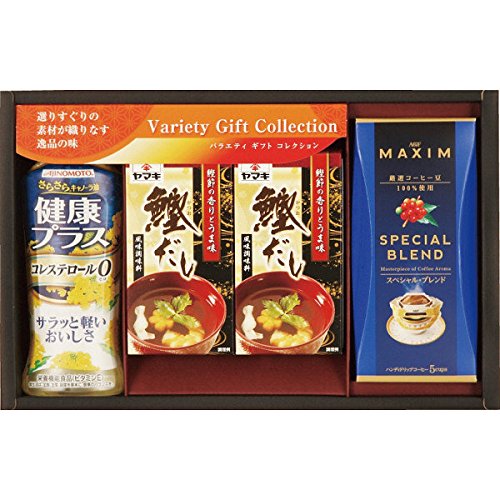 原材料:AGFマキシムハンディドリップスペシャルブレンド(8 g×5)×1、ヤマキかつおだし(4 g×10)×2、味の素さらさらキャノーラ油健康プラス350 g×1