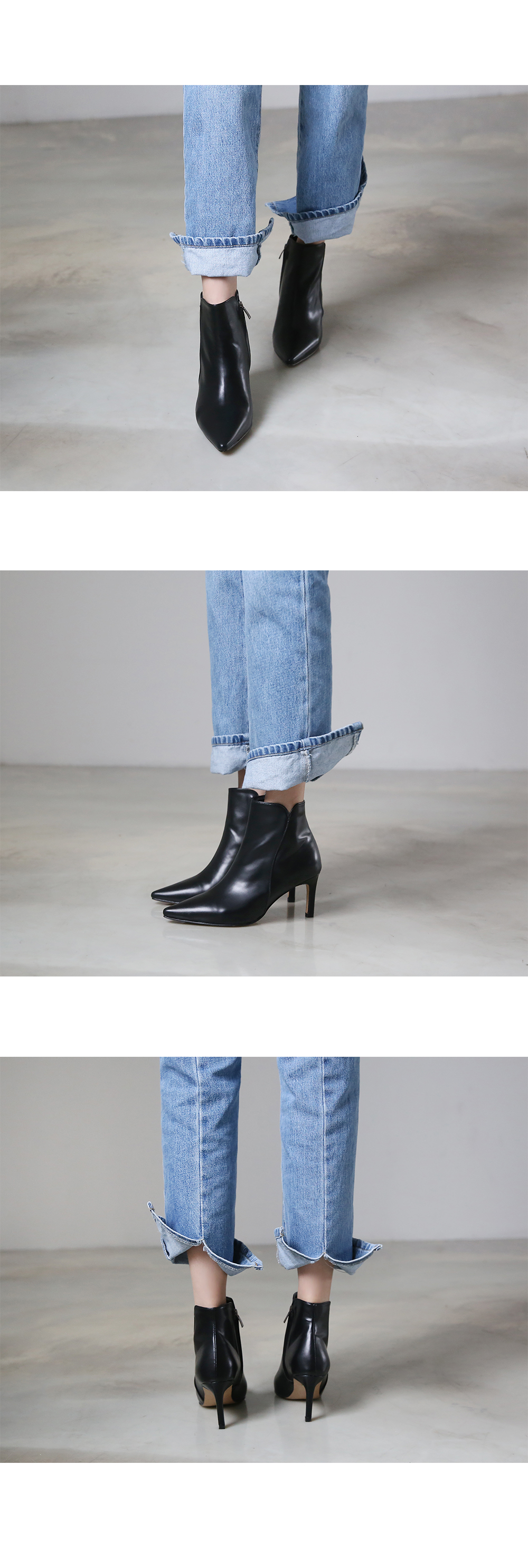 베이직한 컬러와 디자인으로 부담없이 데일리에 즐겨신기 좋은 미들굽 앵클부츠입니다.