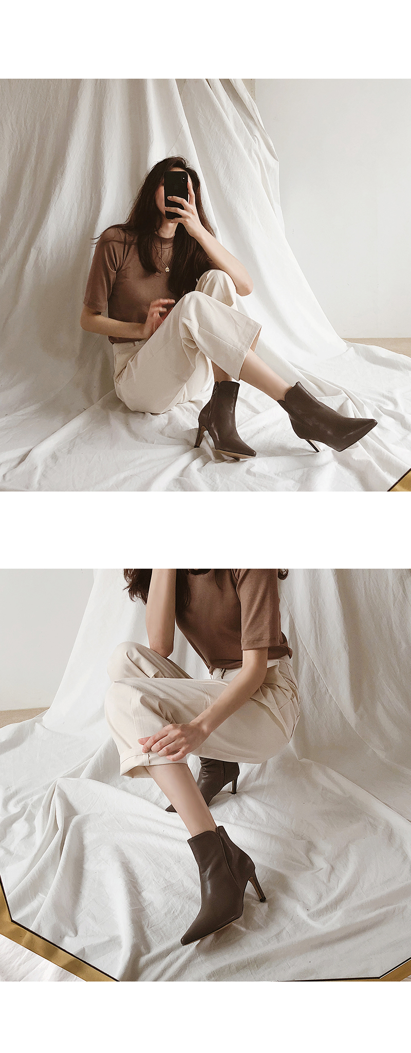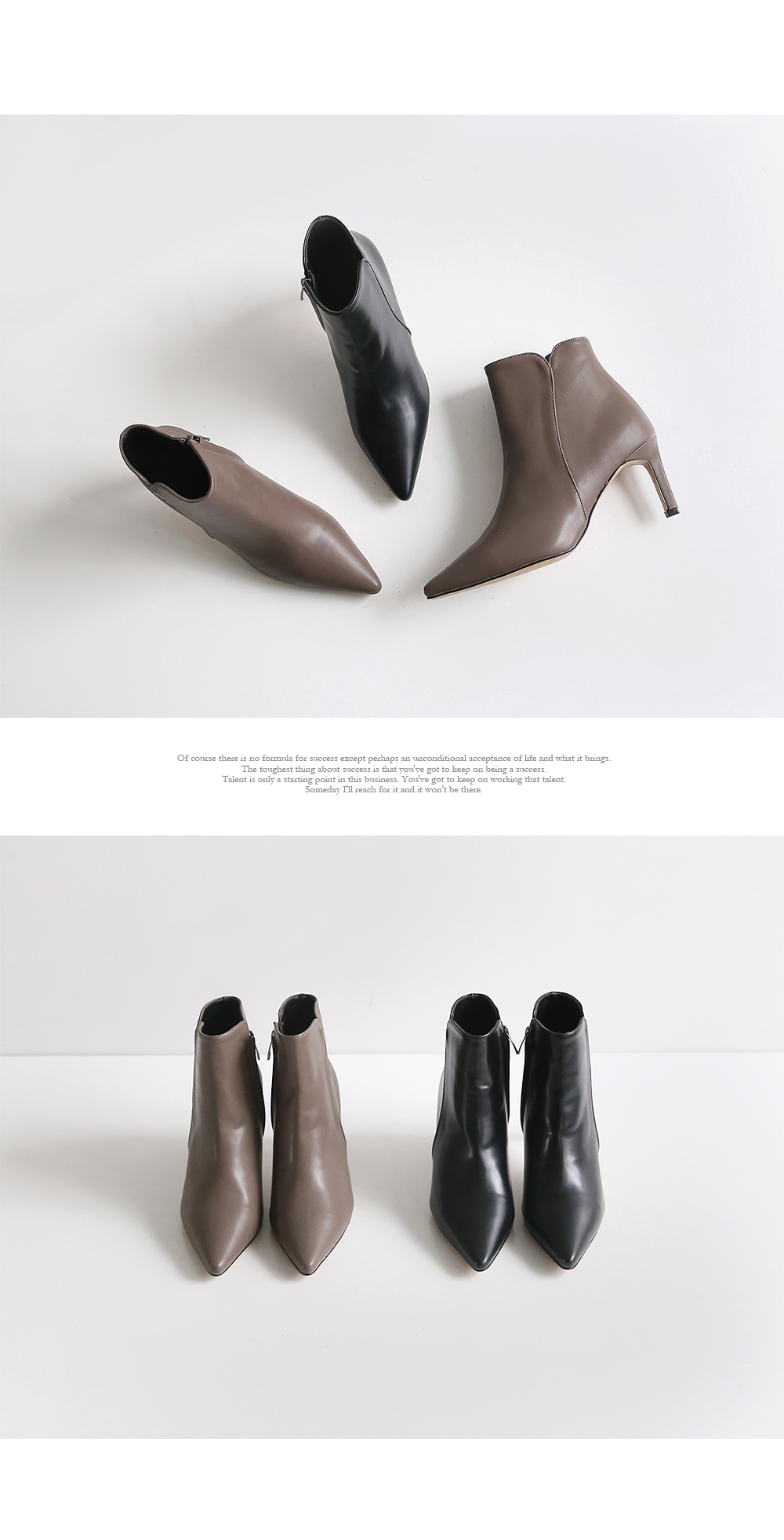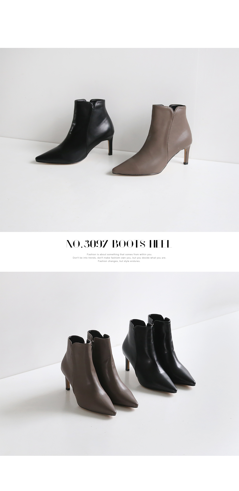 슬림한 굽 라인이 부츠의 라인을 더 돋보이게 해주고 사이드에 달린 지퍼로 신고 벗기 편안합니다.