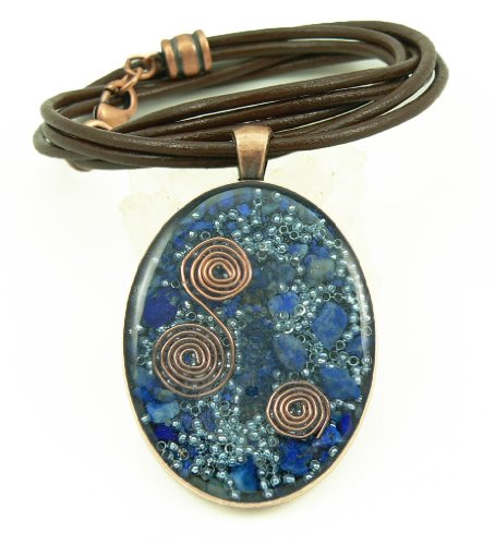 -. Title : Orgone Energy Large Oval Necklace in Copper with Lapis