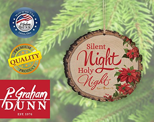 Silent Night Holy Night Poinsetta Rustic Bark Look Wood Christmas Ornament