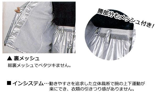 | メッシュ裏地で蒸れにくく、サラッと快適な作業用レインウェアです。視野の広がる回転フードで、袖口は二重構造になっているので雨水の侵入を防ぎます。フードは取り外すことができます。 |