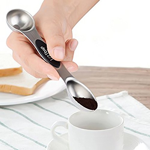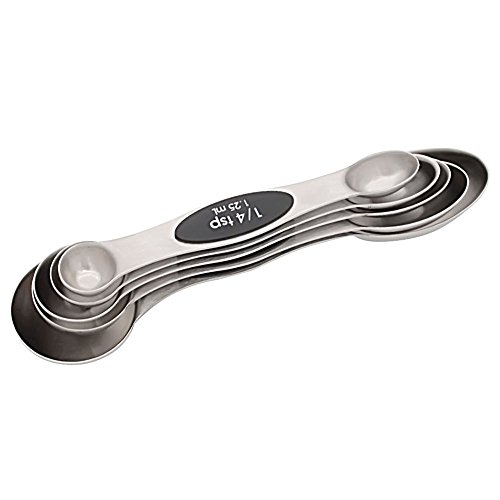 Flat base allows spoons to rest on counter without spilling contents,and each measuring spoon is equipped with two different style spoons.