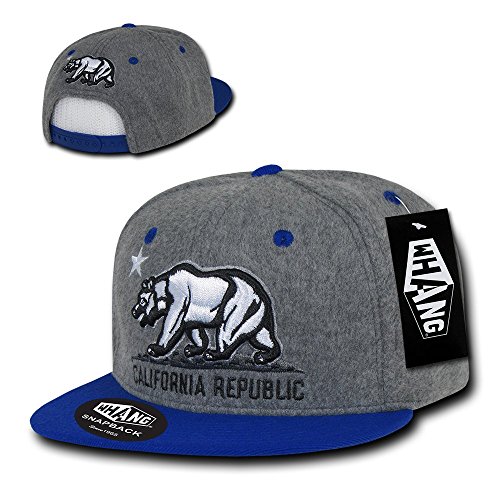- Title : WHANG California Republic Melton Crown Snapback, Ash/Royal