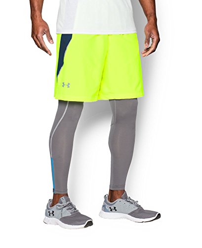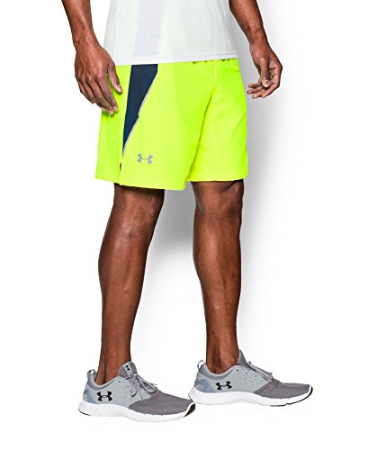 Studio : Under Armour Apparel Publisher : Under Armour Apparel Binding : Sports Product Description Ultra-lightweight woven fabric?durable enough for heavy wear. Mesh side panels for strategic ventilation. Internal mesh liner helps moisture escape adds breathability. Encased elastic waistband with internal drawcord. Mesh hand pockets internal waist key pocket. Reflective logos side piping for greater visibility on low-light runs. Inseam: 9". 0