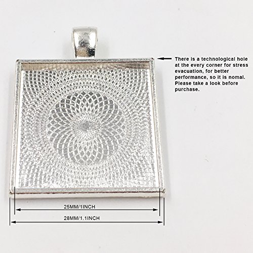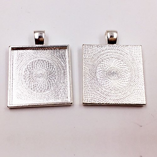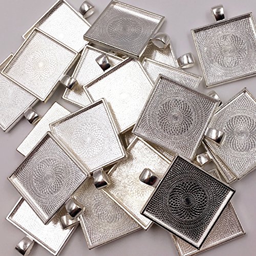 Dcatcher 24 PCS Bezel Pendant Trays Square Cabochon Settings Trays Pendant Blanks, Silver (Silver)