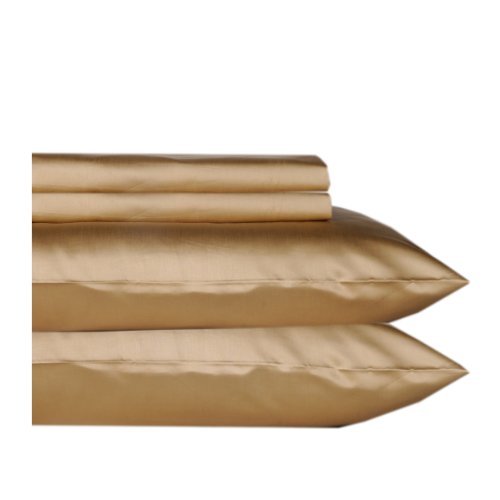 Tribeca Living 500 Thread Count Egyptian Cotton Sateen Deep Pocket Sheet Set, California King, Gold