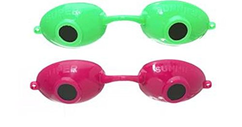 Super Sunnies are the perfect protection for indoor tanning. SUPER SUNNIES® brand Eyeshields have a flexible high-rise nosebridge to eliminate tan lines and an elastic headband to assure perfect fit.Feature