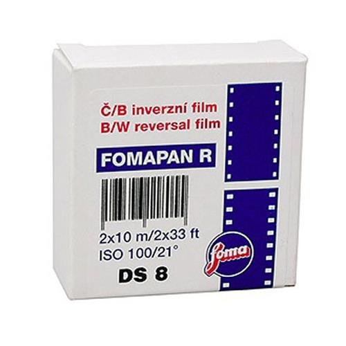 Studio : FOMA Publisher : FOMA Binding : Electronics Product Description Fomapan R100 is a true BW reversal film and is a perfect replacement for Agfa Scala. Fomapan R 100 is a panchromatic sensitized black and white reversal film intended for taking black and white transparencies and/or making movies. It is distinguished by very fine grain, high resolving power and contour sharpness, and higher contrast. The spectral sensitization of Fomapan R 100 is designed for to true transfer color tones into the gray scale when exposed in daylight and simultaneously to make full use of the film speed when exposed in artificial light. Due to a very efficient ant halo layer, situated between the base and emulsion layers, the film features very good resolving power and high contour sharpness. The ant halo layer will decolorize during processing. 0