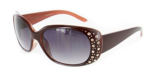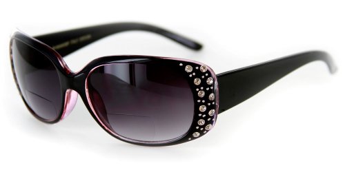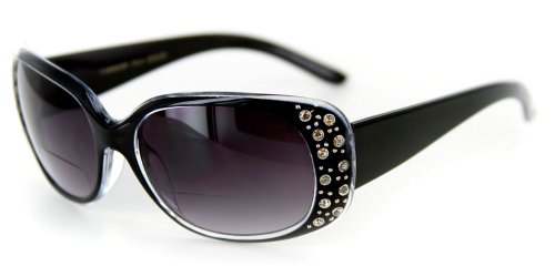 "Oceana" fashion bifocal sunglasses from Ritzy Readers are encrusted with dozens of genuine Austrain crystals, perfect for women who like a little glitz and bling when they go out. These high-fashion readers are made for women who like to read outdoors while showing the world they have a great sense of style. With crystals that shine and glitter in the sunlight and tons of colors to choose from, you're sure to look glamorous in whatever outfit or bathing suit you choose while reading by the pool, on the beach, or just at your favorite outdoor cafe. You'll never be annoyed by the hassle of switching back and forth between your readers and sunglasses again. Perfect for any outdoor activity where you might need to read your phone, GPS, map directions, gardening instructions, or anything else you can imagine. This style is also available without bifocals or vision correction and can be found at our sister storefront, Big Planet Eyewear.Feature