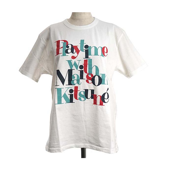 MAISON KITSUNE(메종 키츠네) T셔츠 (레이디스) PLAYTIME WT SS17W717-WH TEE SHIRT PLAYTIME WHITE 사이즈:L