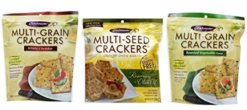 Crunchmaster Gluten Free Baked Crackers 3 Flavor Variety Bundle: (1) White Cheddar Crackers, (1) Rosemary & Olive Oil, and (1) Roasted Vegetable, 4.5 Oz....