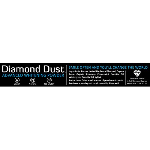 Pitch-black powder to whiten your teeth? Yes! Activated charcoal is the secret ingredient. It's an oxidized version of charcoal and can be used to effectively whiten teeth. It removes external stains from your teeth without the toxic chemical ingredients used in commercial tooth whitening. This tooth whitening promotes good oral health and can change the pH in the mouth, helping to reduce things that cause cavities, gum disease and bad breath. Not only does the activated charcoal have amazing health benefits, the other ingredients also follow suit. Rosemary is an herb that has been used for thousands of years in medicine for its anti-inflammatory properties and antioxidants. Anise is sweet in its flavor and is comparable to the taste of licorice. It can be used to suppress cough, act as a diuretic and soothe stomach discomfort. Peppermint essential oil is found to be extremely effective when it comes to killing bacteria that thrives in low oxygen environments, like your mouth. Wintergreen essential oil, with its minty, flavor packs quite a punch. One use for wintergreen is fighting and eliminating bacteria overgrowth in the mouth. Xylitol the main sweetening ingredient in Diamond Dust Tooth Whitening Powder holds its standards just as high as the rest of the amazing ingredients. You will commonly see Xylitol in dental products. Xylitol has been found to prevent tooth decay, even though it is used as a sweetener. Unlike sugar, it has fewer calories so it won't raise your blood sugar levels. Because Xylitol is not the same as sugar it does not feed the bacteria in your mouth that creates cavities. With this many great qualities what's not to love. Diamond Dust Whitening Tooth Powder is your path to a brighter, more confident smile. Order today!
