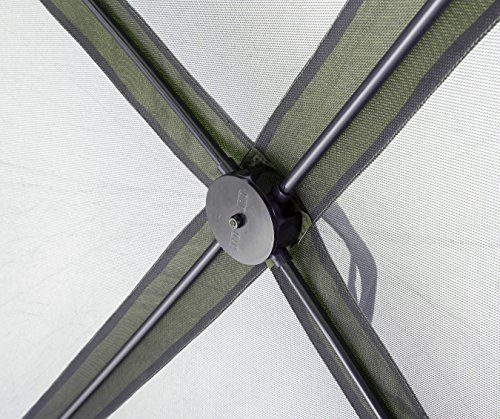 No-see-um mesh screen, Waterproof taped seams. Size : 12 x 12. The tent enjoys 94 total square feet of interior space with a 90″ center height clearance and easily fits 6-8 people.