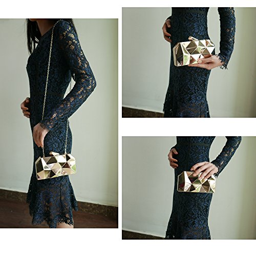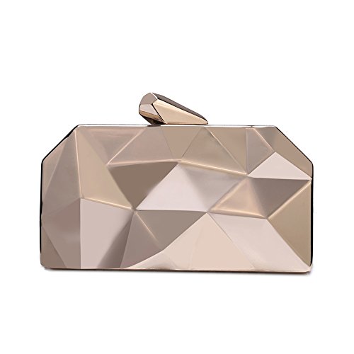 MATERIAL: Made of Alloy Metal ,stone cut, hard case clutch, with the gold and the fun geometric print/design of this bag