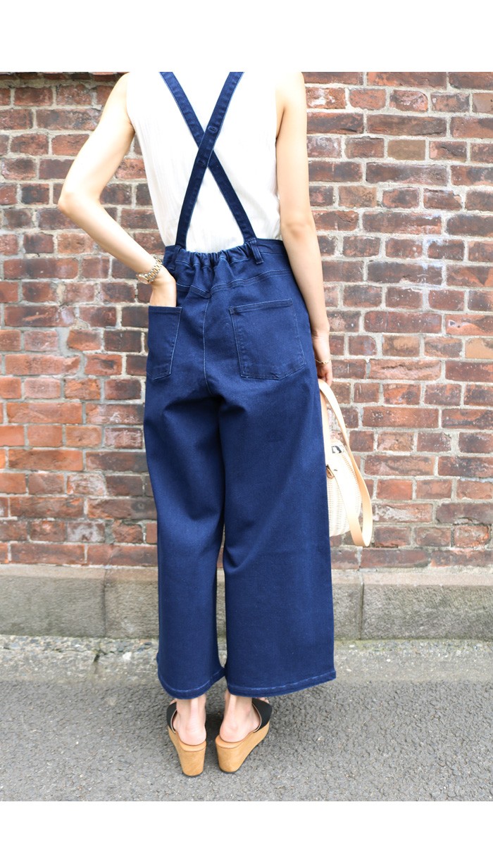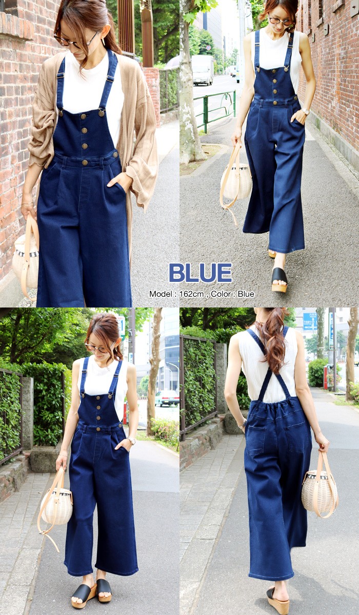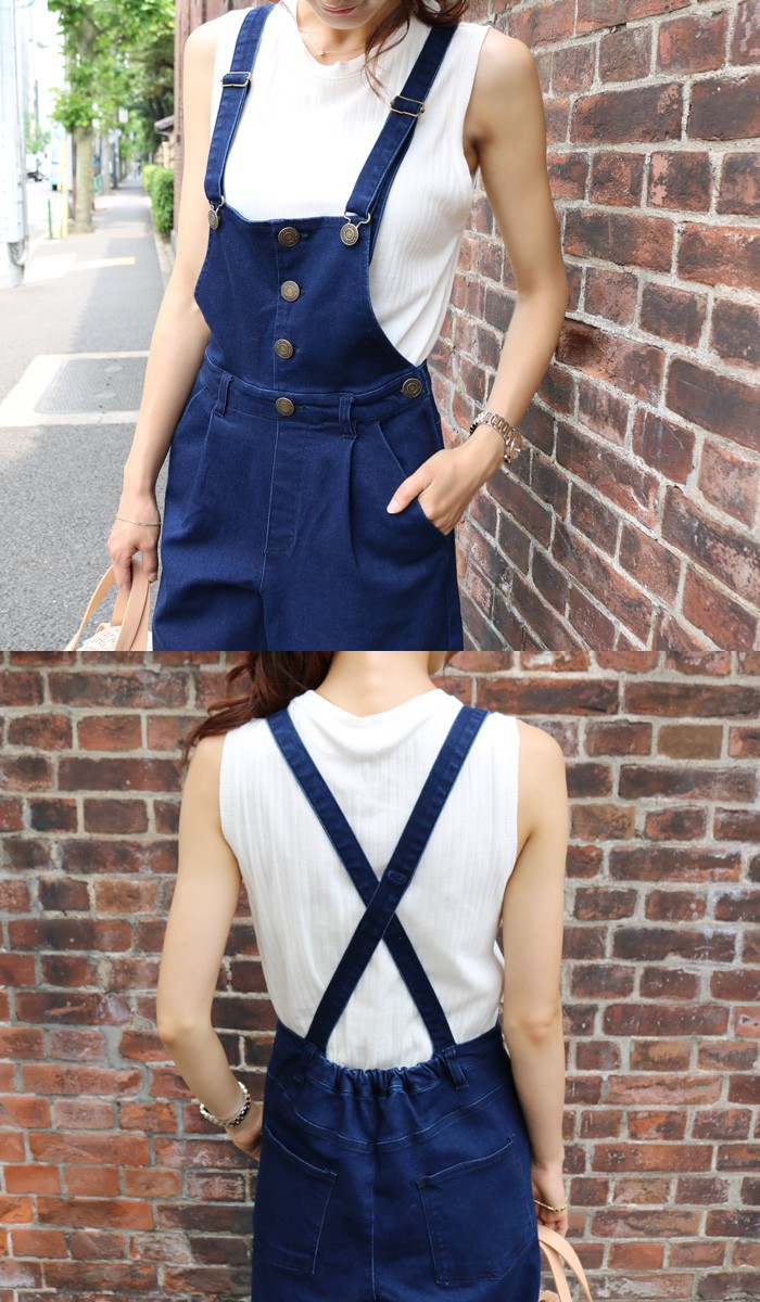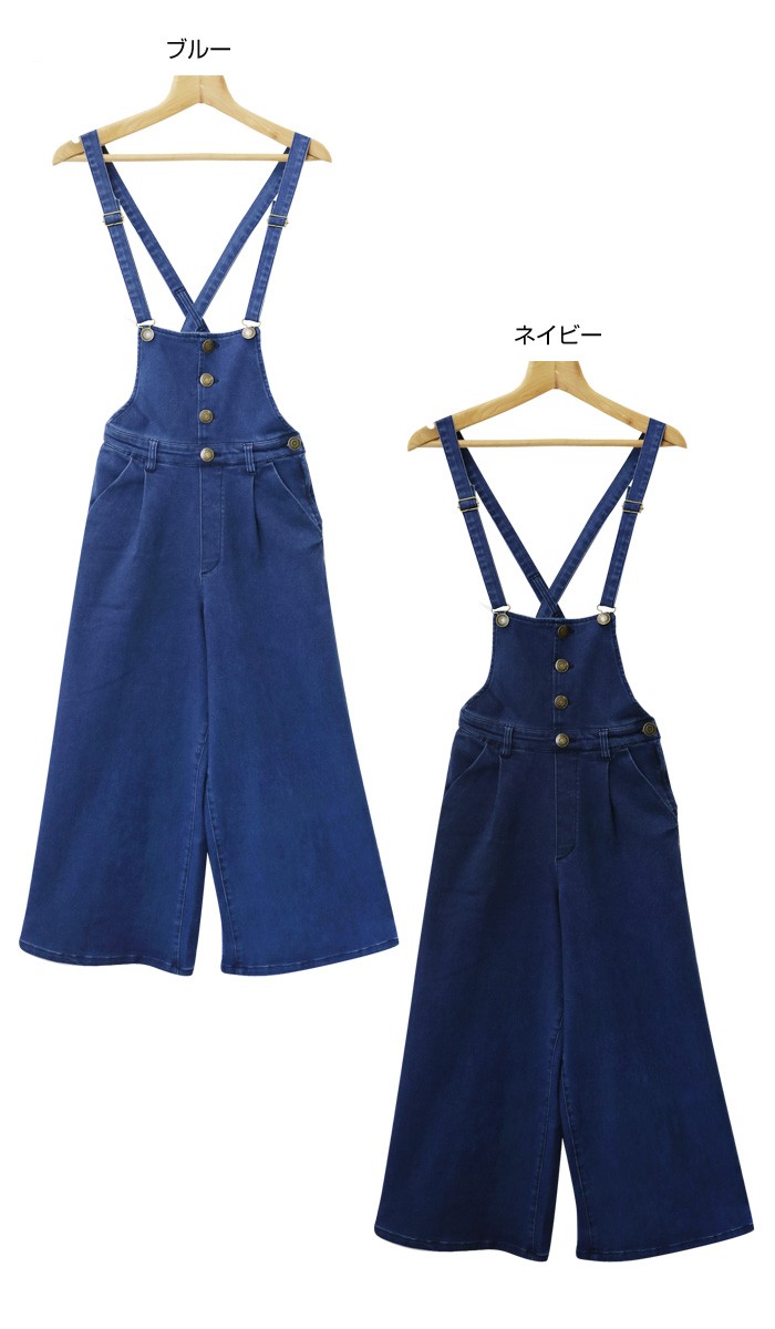 ワイドパンツタイプのデニムサロペ♪フロントボタンはフェイクデザイン。