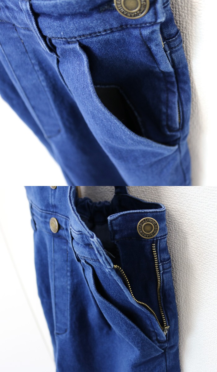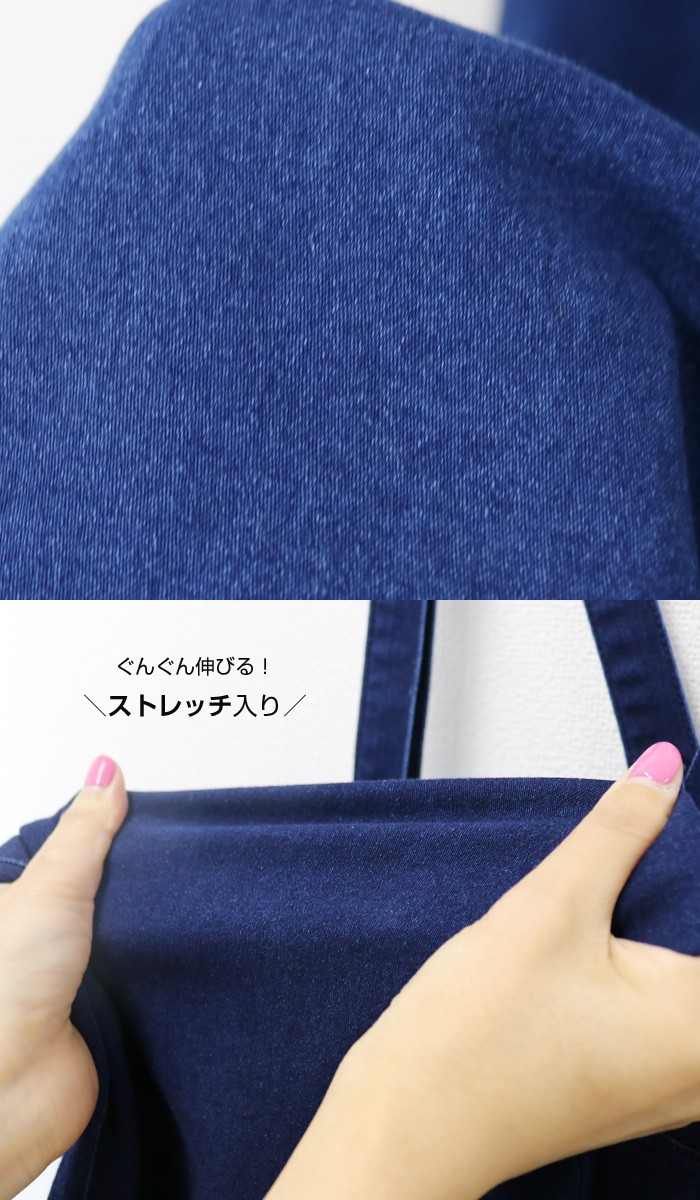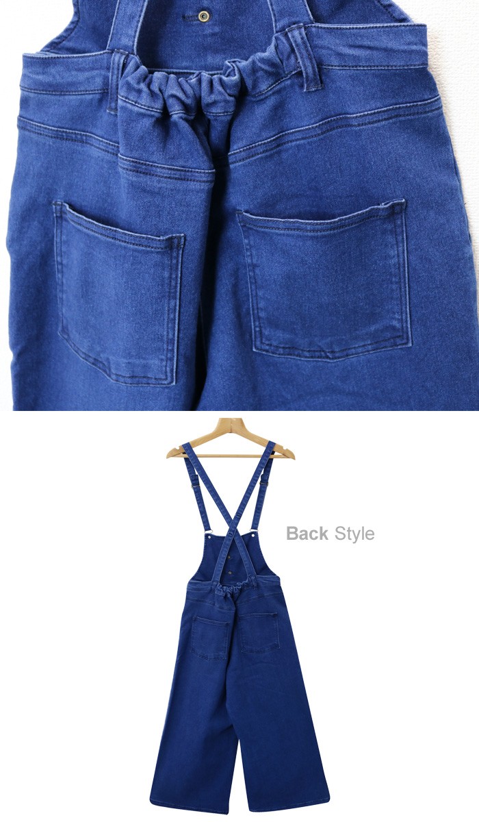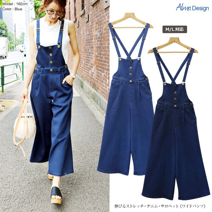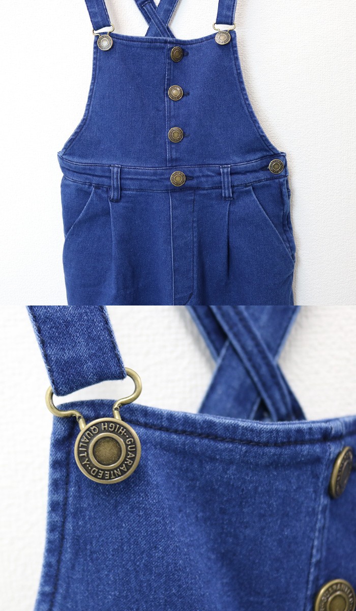 ワイドパンツタイプのデニムサロペ♪フロントボタンはフェイクデザイン。