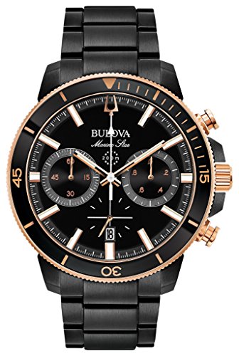 -. Title : Bulova 98B302 Mens MARINE STAR Black Chronograph Watch w/ Date