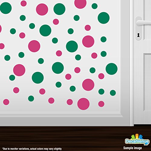 Set of 30 - Hot Pink / Green Circles Polka Dots Vinyl Wall Graphic Decals Stickers