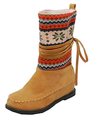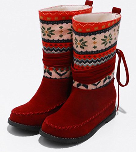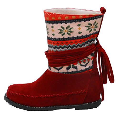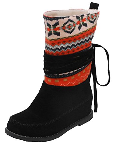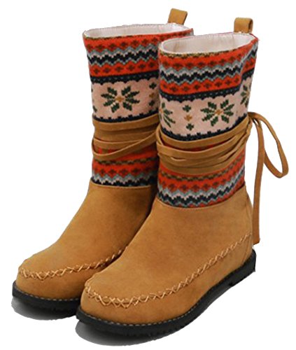 Binding : Apparel Product Description Winter is coming! Do you want a pair of boots both of fashion and warm? This pair of snow boots is a perfect choice. This lovely shoes features pull on closure and round toe. With their beautiful print in the upper, you will look more elegant and cute. The faux fur lined will warm you all winter. The sole is made of good rubber. You will feel comfy in their soft bottom. The heels measure 1.6 inches. You will feel comfortable in their low wedge heels. So you will not feel tired even walking all day long. They are of high quality and durable. Just pick them to show your beauty. 0