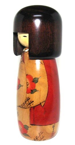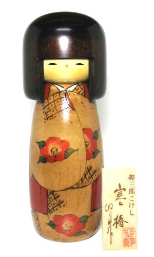 「Kantsubaki Medium-sized」beautiful New Japanese Kokeshi Doll By Usaburo (卯三郎作 寒椿、中)