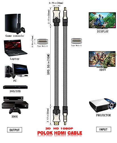 POLOK High-Speed HDMI Cable features 24K gold-plated, 99.996% and high purity oxygen-free copper, corrosion-resistant connectors. The shielding connectors are made of Zinc Alloy and adopt electroplating process. The cables' connectors have fine grinding, streamlined and science appearance showing the metallic texture. It comes with a durable, black, PVC, Nylon Mesh outer layer, which defends against outside interference, helping to maintain the integrity, purity of the digital signal